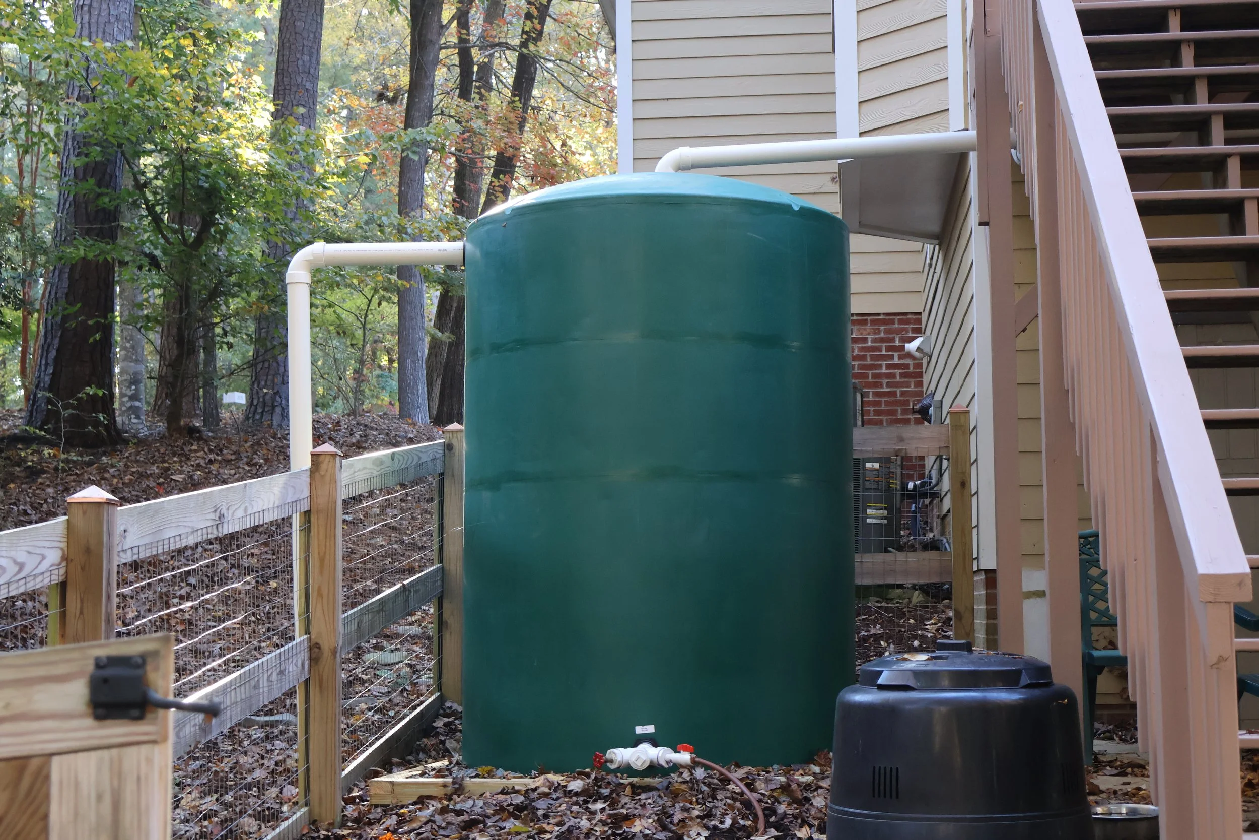 We returned to the Wild Oak Lane neighborhood in Carrboro to address a residential drainage issue contributing to stormwater runoff toward Bolin Creek by installing a 500-gallon cistern and a native rain garden to capture and absorb excess water.